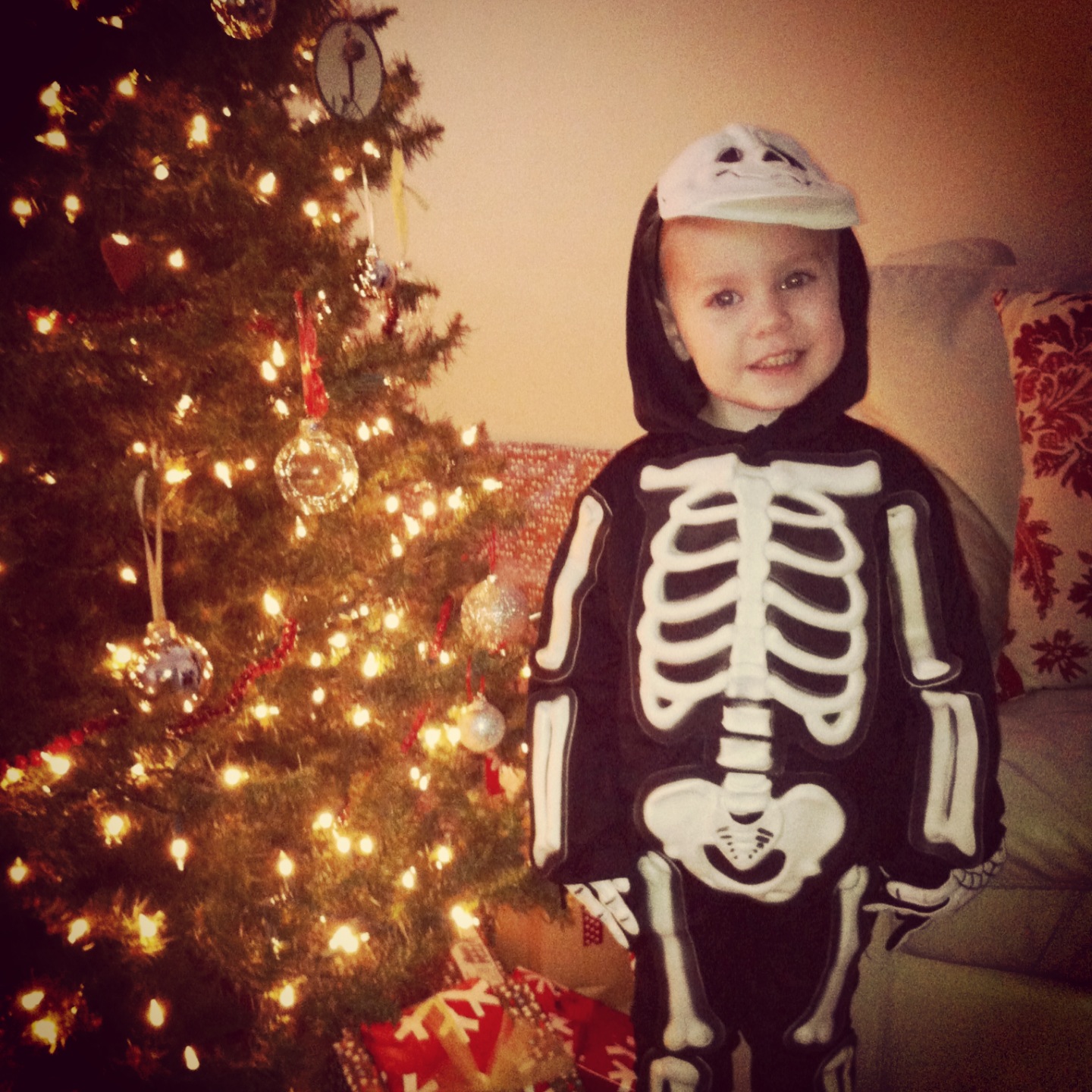 Jack's Christmas spirit was in full force that morning as he paraded around the house in his bones costume.
